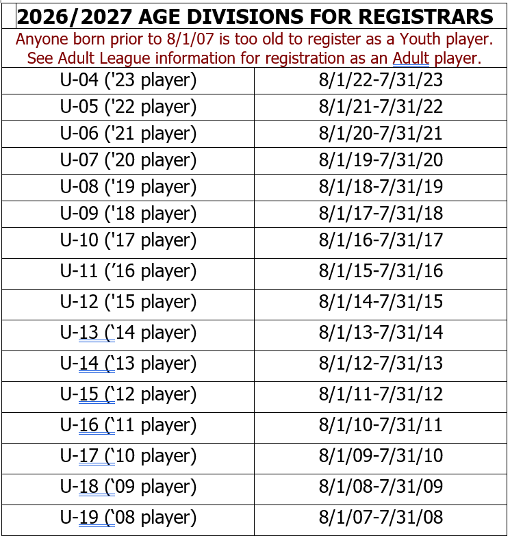 - After verification, an approved registration form and player pass will be sent to you. Registrations are not complete until you receive the approved forms and player pass (player pass for ages U10 and up only)